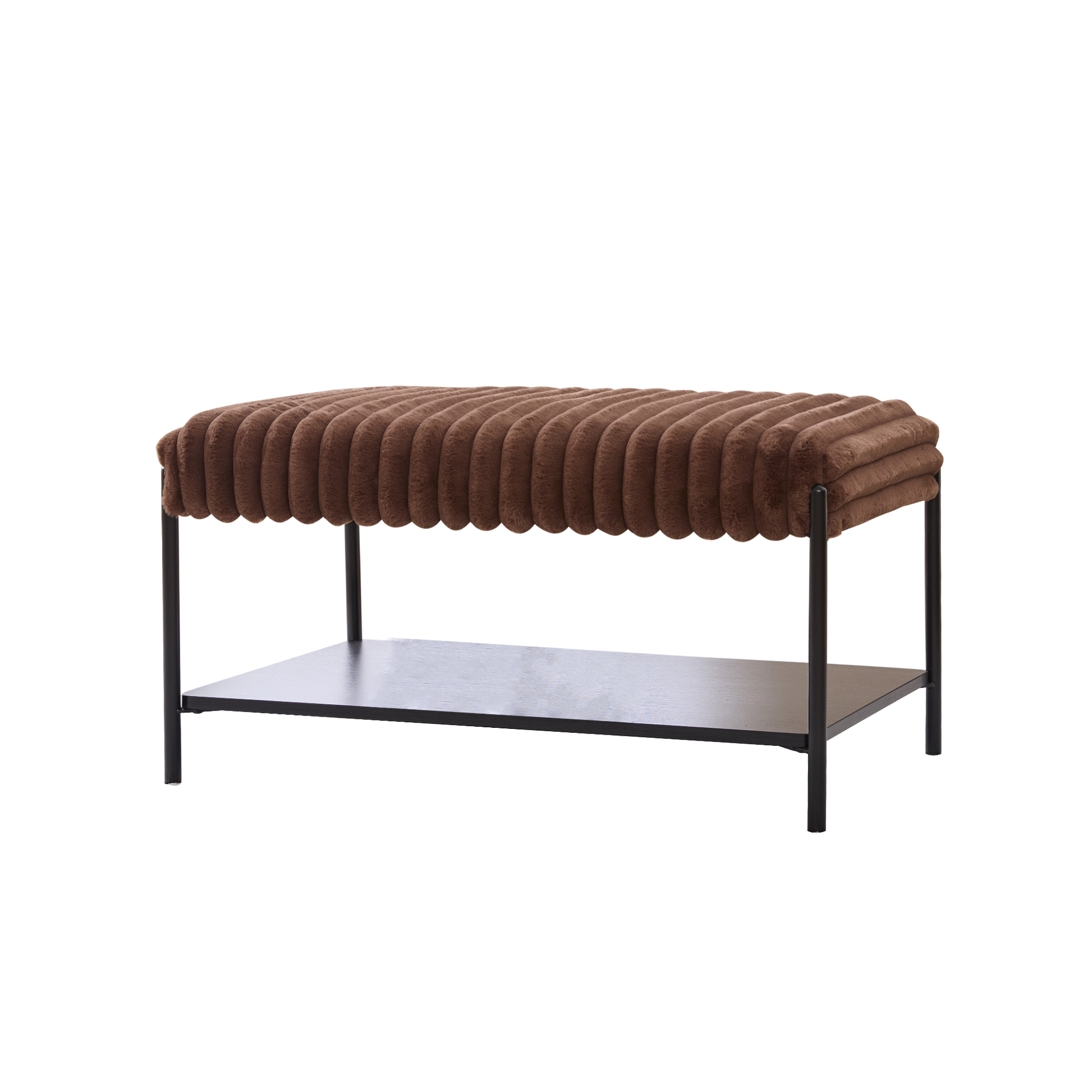 Brown Faux Fur Bench with Storage Shelf & Metal Legs