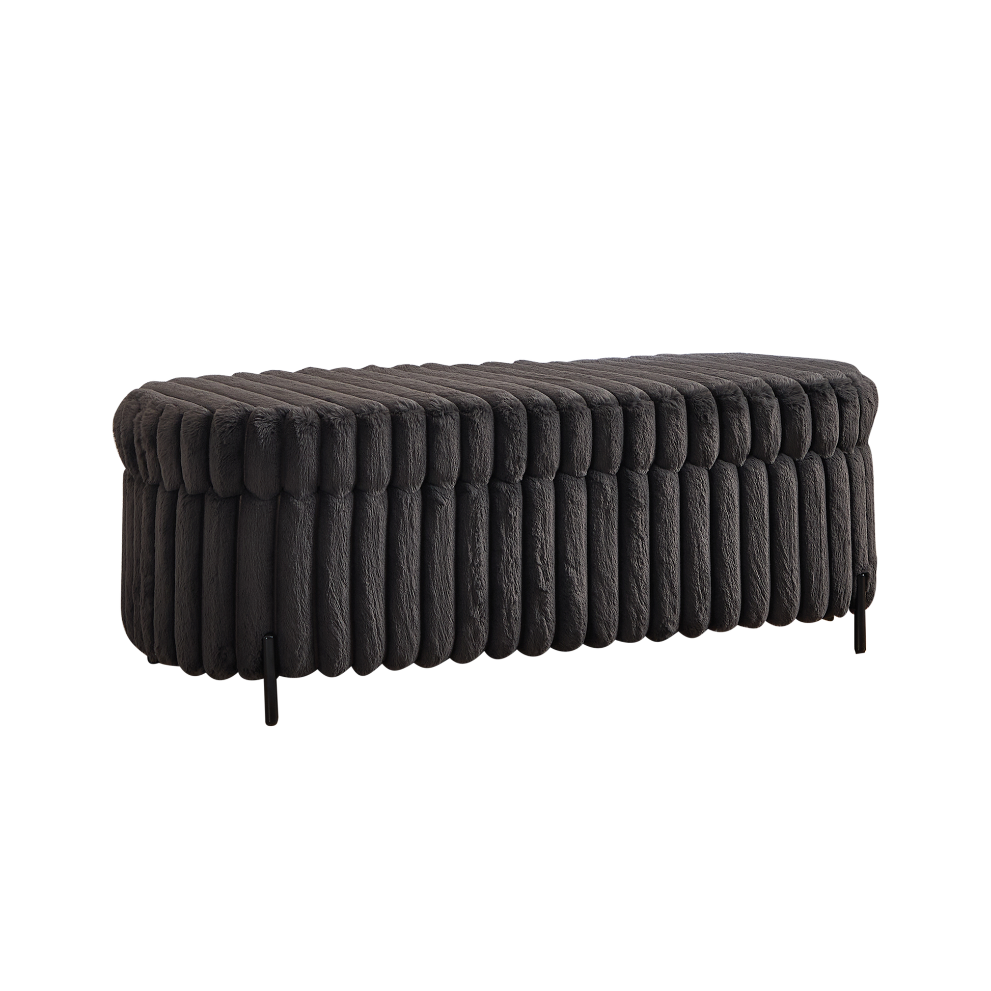 Charcoal Faux Fur Flip Top Storage Bench with Black Metal Legs, 49.2' Wide Bed End Stool Foot Rest