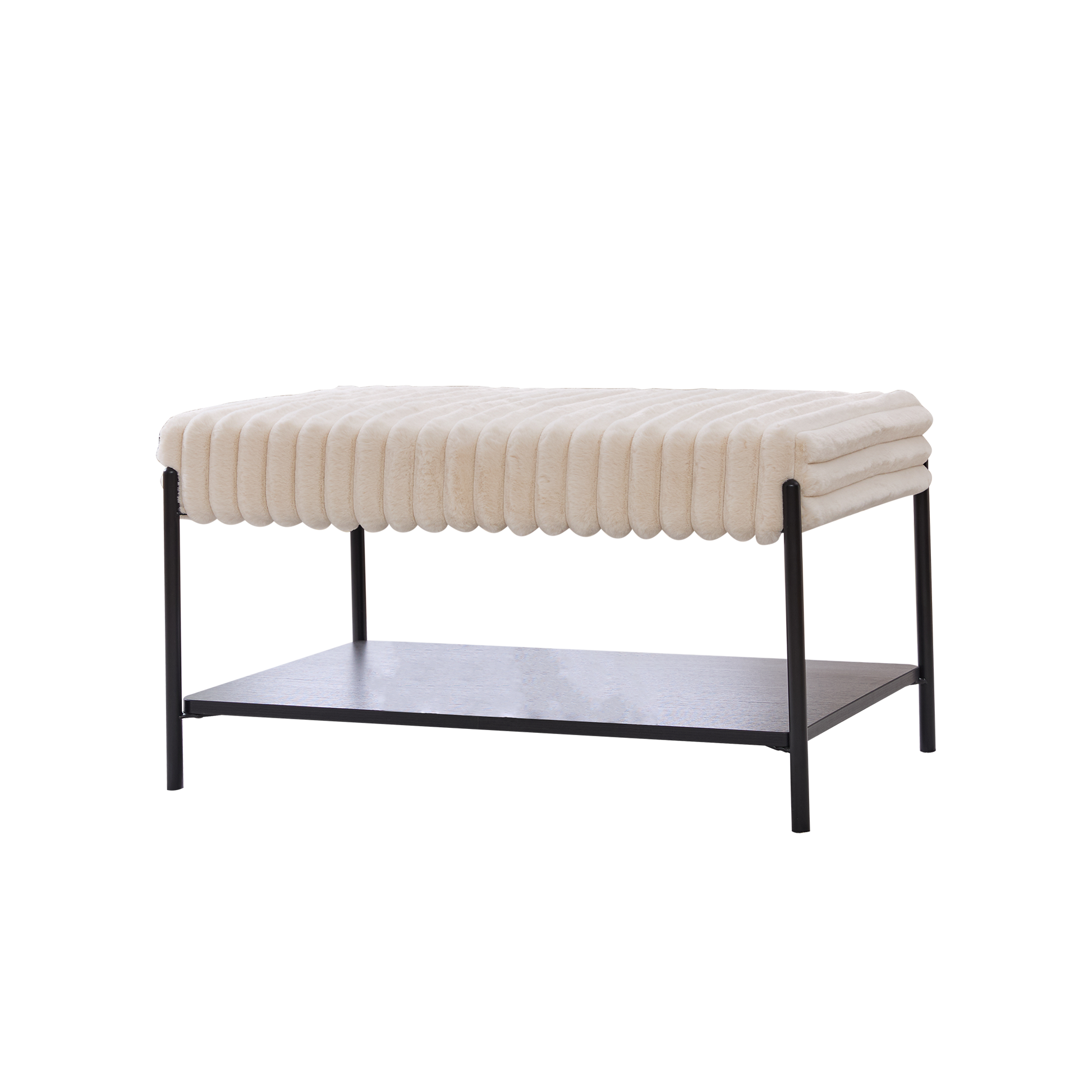 30.7" Faux Fur Bench with Open Storage & Metal Legs, Beige